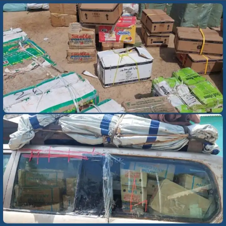 كانت تحمل على متنها بضائع مختلفه عبارة عن صابون غسيل وعطور وجنزبيل وأحذية بالإضافة لدهانات وبطاريات يدوية