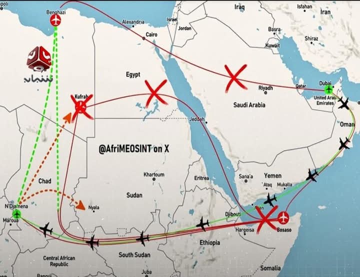 وأفاد التقرير بأن هذه الإمدادات باتت تمر عبر مطارات في شرق ليبيا وتشاد، في محاولة للالتفاف على الرقابة المشددة على الممرات التقليدية.ووفقًا للصحيفة، فإن تشديد الخناق على خطوط الإمداد المباشرة عبر البحر الأحمر وبعض دول الجوار، أجبر أبوظبي – بحسب مصادر دبلوماسية واستخباراتية – على اللجوء إلى شبكات نقل أطول وأكثر كلفة، تشمل رحلات جوية غير مباشرة وتنسيقًا مع أطراف محلية في مناطق تشهد هشاشة أمنية.