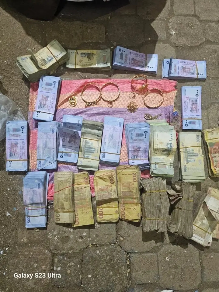 وتمكنا من جمع كميات من الذهب والأموال، وتم إتخاذ إجراءات بلاغ