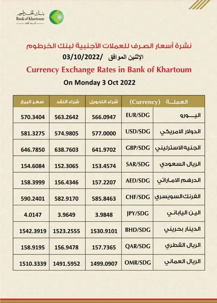وذلك في بنك الخرطوم كأعلى سعر مقدم من البنوك .