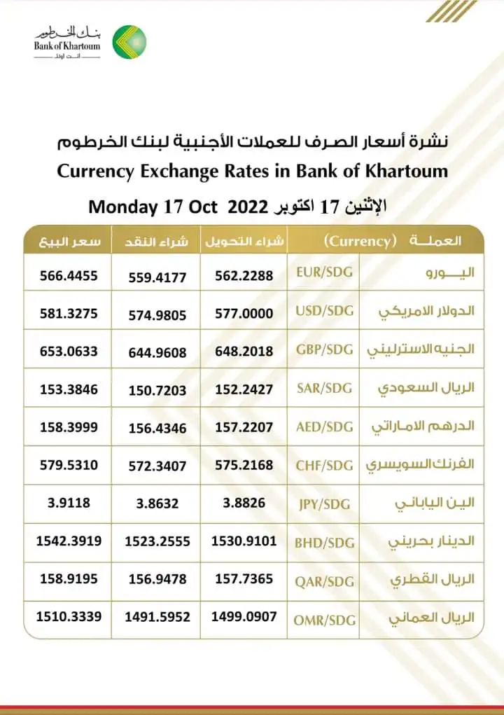 واصلت أسعار العملات الاجنبية استقرراها اليوم الأثنين في جميع المصارف السودانية