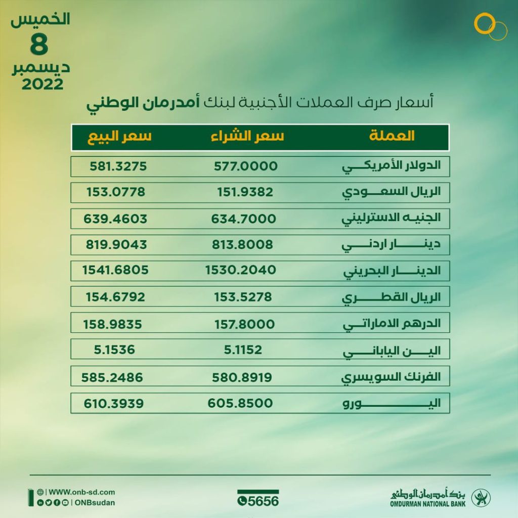 أسعار العملات الأجنبية مقابل الجنيه السوداني اليوم الخميس 8 ديسمبر 2022