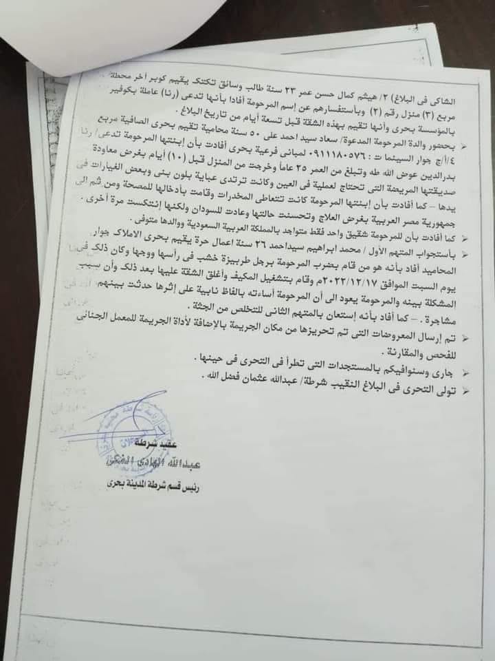 إلى ذلك ألقت قوات الشرطة القبض على قاتل الفتاة وهو مالك الشقة التي كانت تستأجرها الفتاة القتيلة, وفيما يلي يورد “الزول” نص بيان الشرطة حول الجريمة: