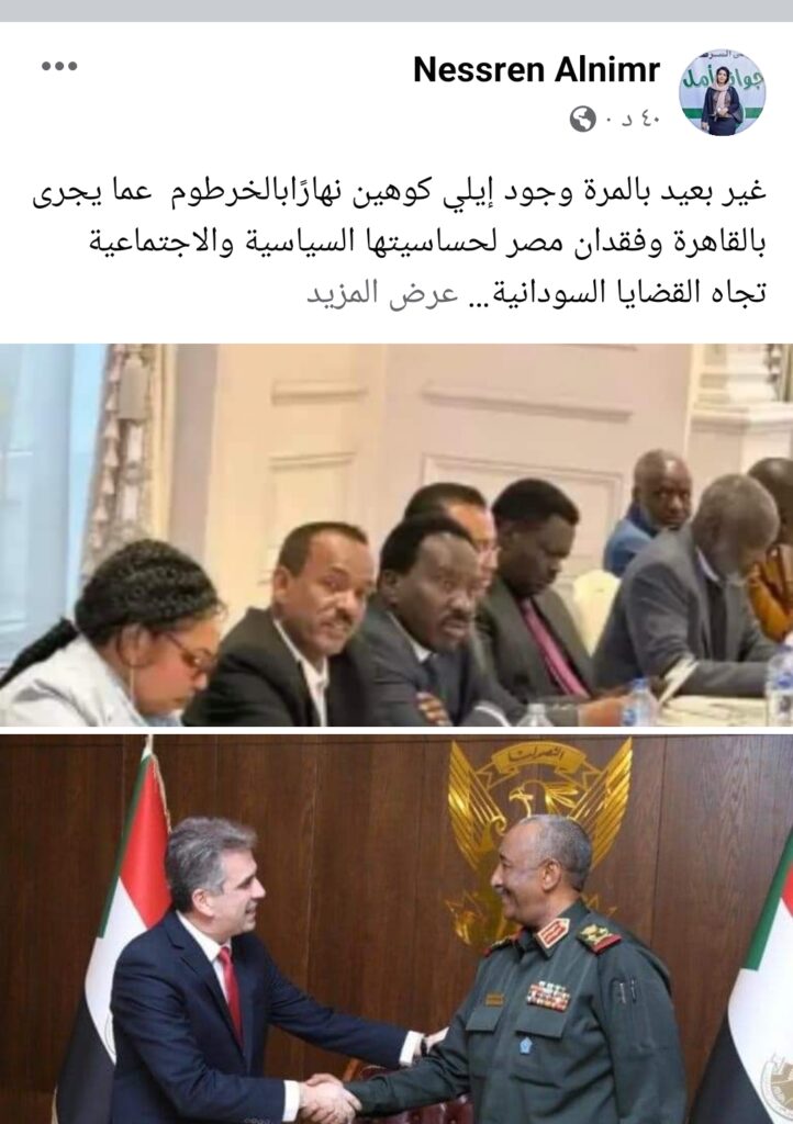 غير بعيد بالمرة وجود إيلي كوهين نهارًابالخرطوم عما يجرى بالقاهرة وفقدان مصر لحساسيتها السياسية والاجتماعية تجاه القضايا السودانية الأمر أكبر بكثير من طائرة حفل الشاي المقدس في موسم الحج الي العاصمة الإدارية سياسيون متشاكسون بلا مسئولية لا ينظرون إلا تحت أقدام أحلامهم البائسة بكرسي وعربية وشوية مخصصات شخصية فات عليهم أنهم مجرد أدوات شطرنج في لعبة الكبار يقبلون باداء أدوار الكومبارس في (لعبة الأمم )متمسكين بقضايا قوامها الزيت والسكر في بلد تصارع من أجل البقاء ليست باستطاعتهم التفكير خارج حصصهم من كيكة الإنتقالية المسروقة المشهد الآن يأتي ضمن مخطط كبير ليس الشعب السوداني ولا ثورته ولا ضحاياه ولا مستقبله ضمن أجندته،المشهد تجاوز الحديث عن التطبيع مع اسرائيل الي ما بعده من قضايا التعاون المشترك والإستثمارات في مشهد عبثي يفرض سياسة الأمر الواقع في قضايا مصيرية ما كانت لتناقش بهكذا طريقة دون برلمان ولا حكومة منتخبة بل في ظل انقلاب عسكري مكتمل الأركان هذا المشهد بتخريجاته هنا وفي القاهره وأبوظبي واديس أبابا بالاصالة او بالوكالة. تم ترتيبه بدقة وكل ادى دوره ووضع شروطه وضمن حقوقه. ونحن هنا أصبحنا أوراقًا لاقيمة لها بيد نخبة سياسية وعسكرية أفلحت في إدمان الفشل كما قال منصور خالد بمنتهي الأنانية والذاتية # (وإنما ياكل الذئب من الغنم القاصيه )